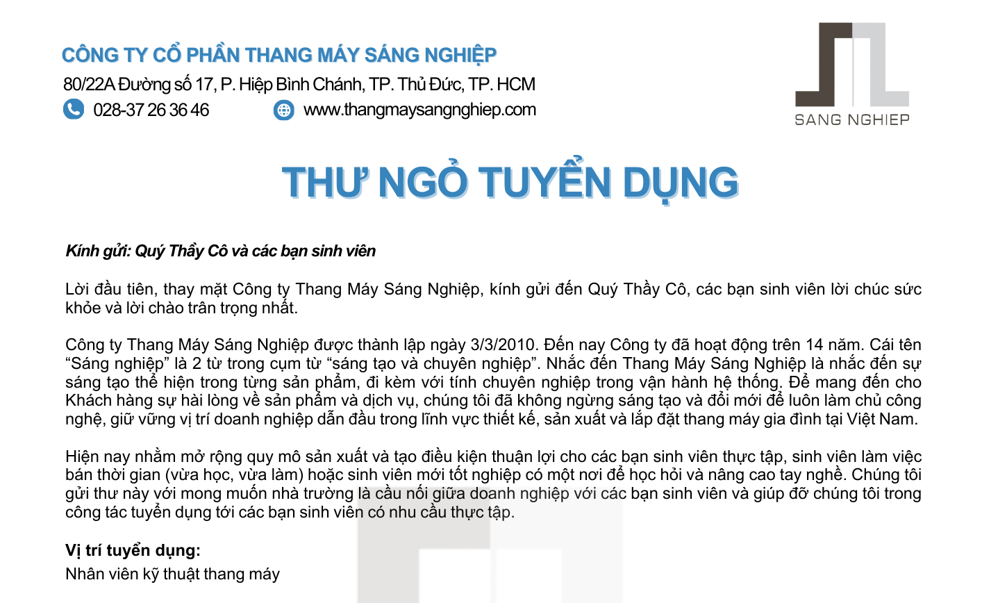 “Nâng tầm cuộc sống – Nghiệp sáng tương lai”, đó là phương châm mà chúng tôi – Thang máy gia đình Sáng Nghiệp hướng tới. Vì sứ mệnh tạo nên những giá trị cuộc sống, Thang máy Gia đình Sáng Nghiệp đã và sẽ luôn nỗ lực hết mình vì sự phát triển – khẳng định thương hiệu Việt.