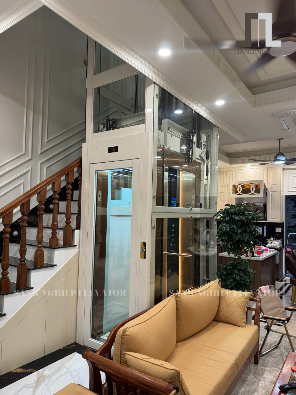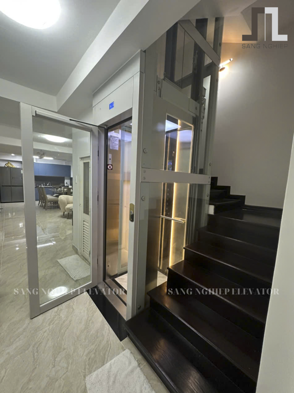 Thang máy gia đình Sáng Nghiệp phục vụ cho các công trình nhà ở gia đình tư nhân, nhà biệt thự, nhà phố và các công trình cải tạo cũ. Thang máy gia đình Sáng Nghiệp với thiết bị chính hãng nhập khẩu theo tiêu chuẩn Châu Âu.