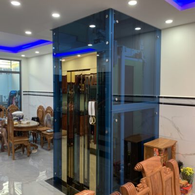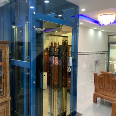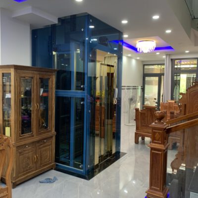 Thang được thiết kế kết hợp giữa inox gương xanh và vàng. Thiết bị được nhập khẩu chính hãng như Đức, Italy,v.v… tạo nên một chiếc thang máy chất lượng cao, mẫu mã sang trọng đem lại sự kết hợp ăn ý cho ngôi nhà.
